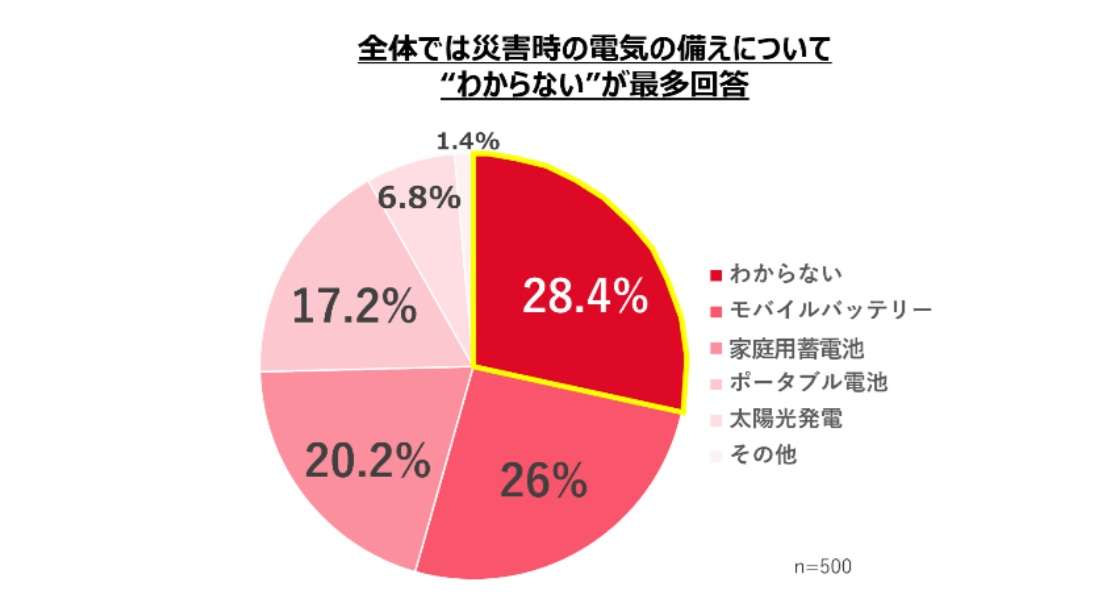 東京電力エナジーパートナーが全国500人に実施した調査では、災害時に不安を感じることとして 「停電(電気が使えない)」が72.6% と最も多く挙げられました。