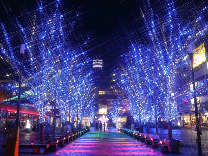 駅前から中央通り、若草公園まで街中が光に包まれて、歩いているだけでテンション上がります。