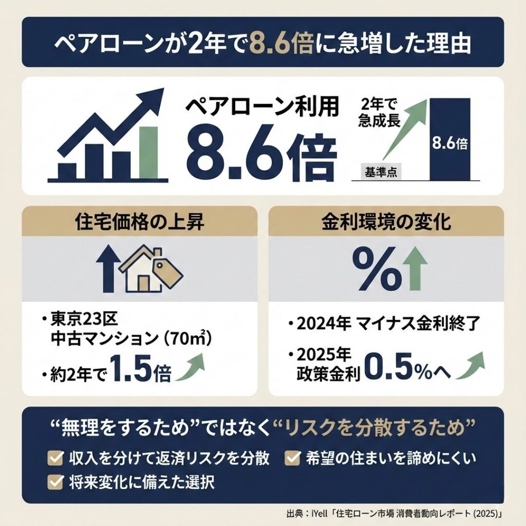 ペアローンが2年で8.6倍に急増|住宅ローン市場の変化と、後悔しない選び方