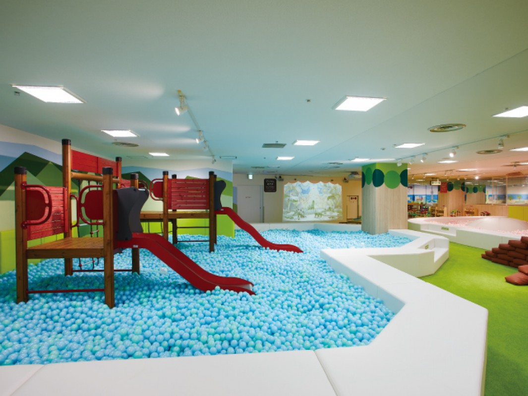 “地獄めぐり”をテーマにした珍しい室内遊園地で、10万玉の巨大ボールプールや体を動かせる遊具が充実しています。