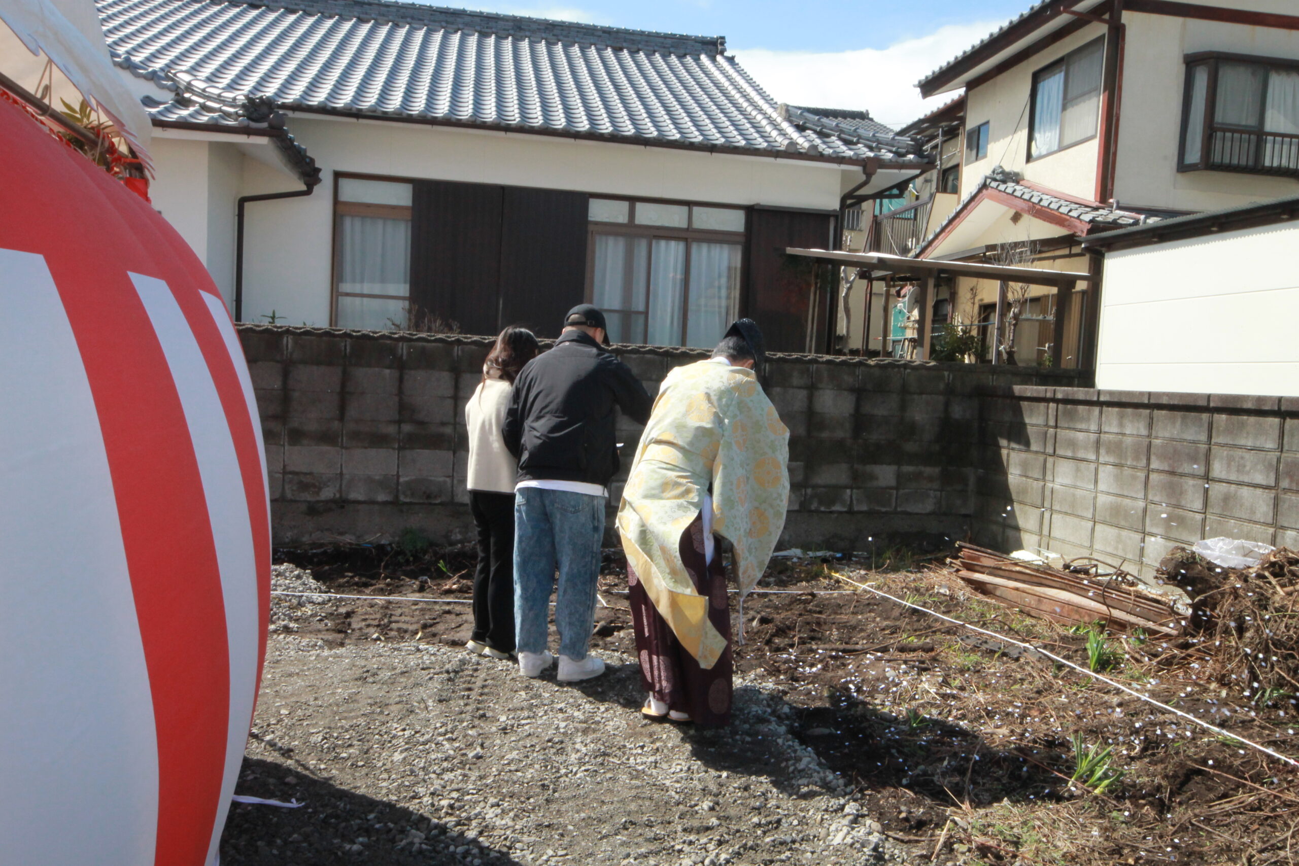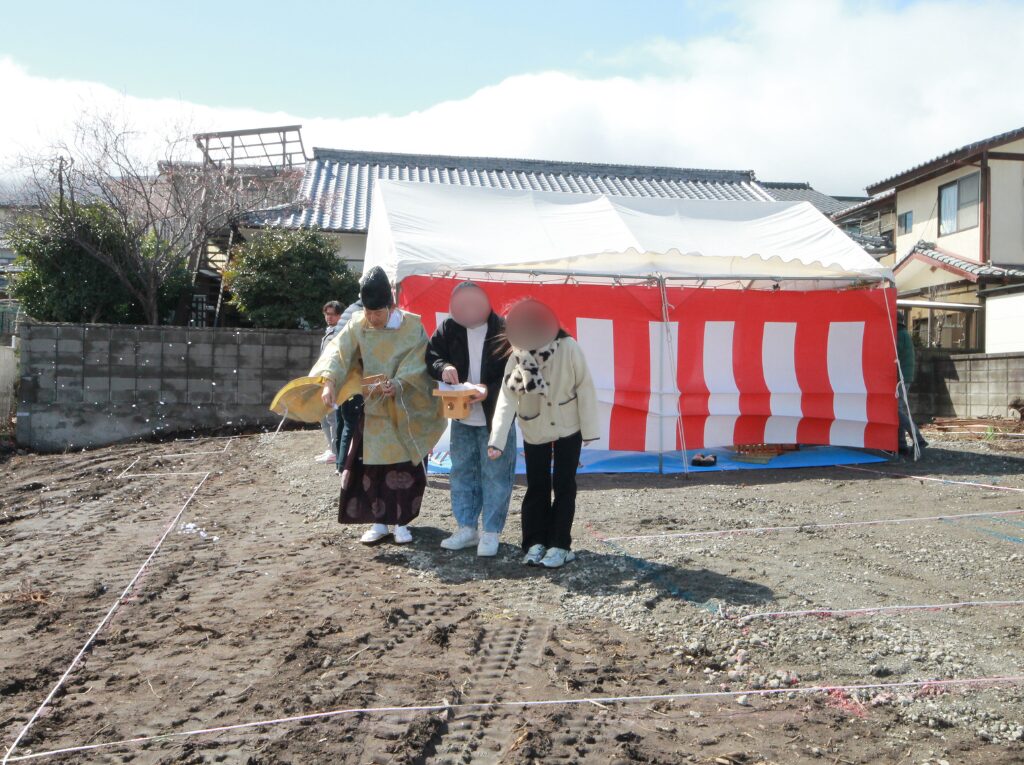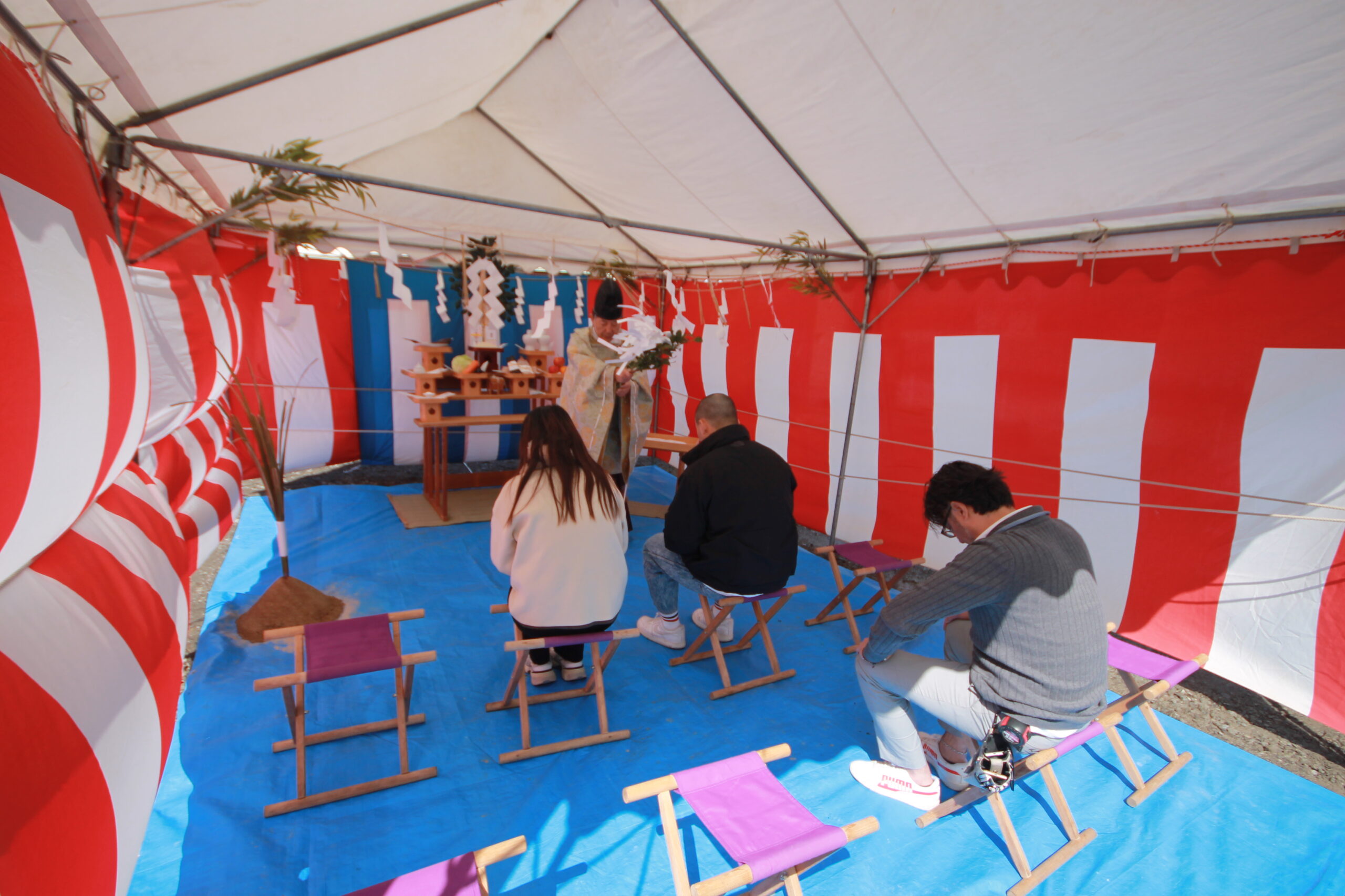 この日は運良く雨が上がり、暖かい地鎮祭となりました。