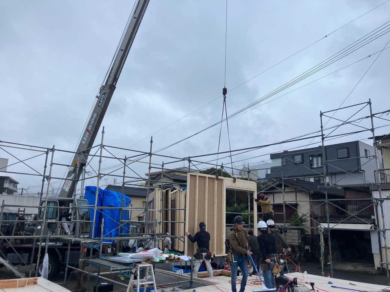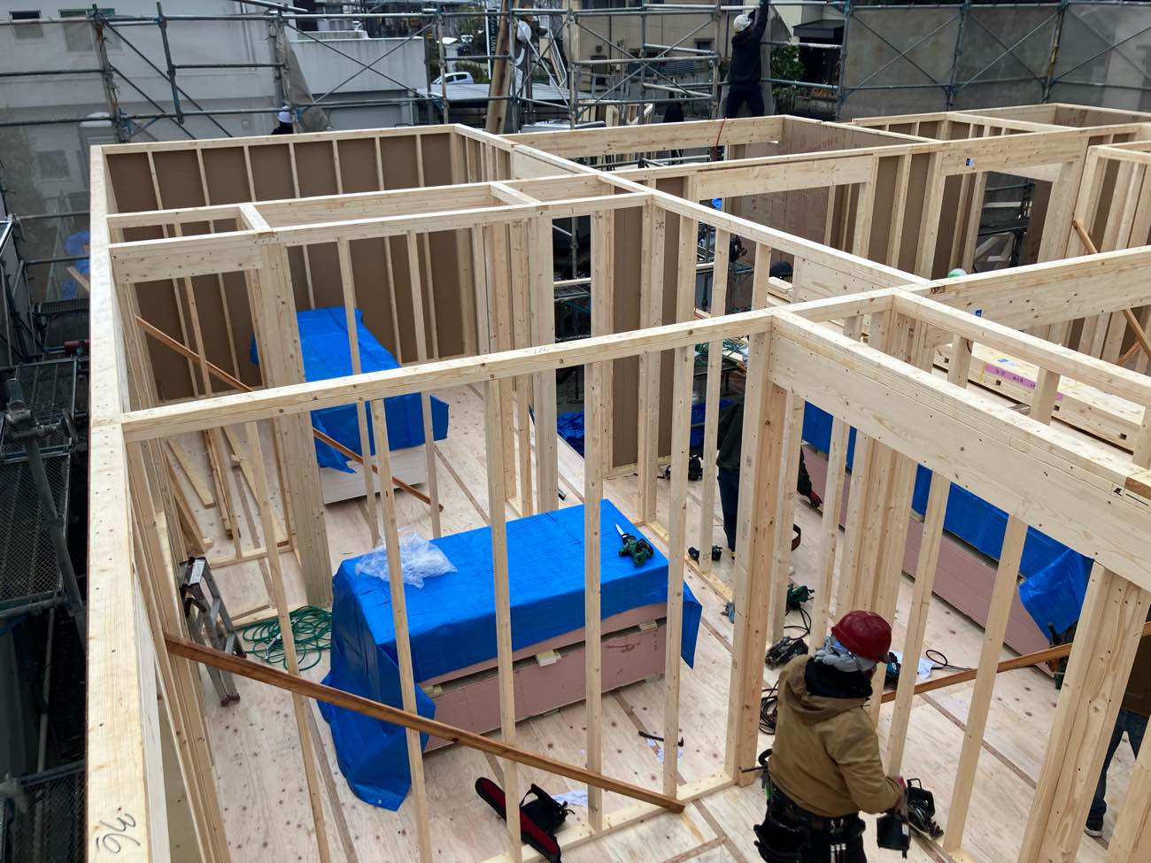 2×4工法は面と面で組み立てるので上棟が早いです。