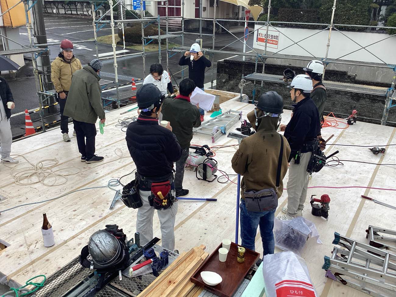 SOKEN恒例の上棟を始める前の朝礼です。
