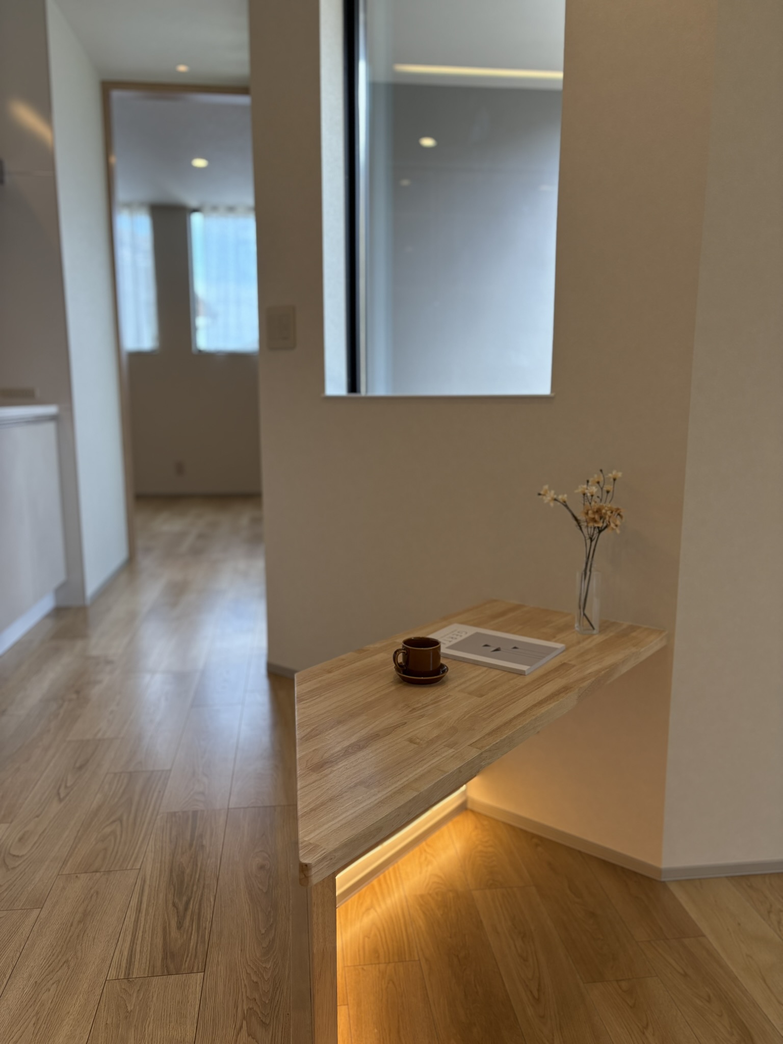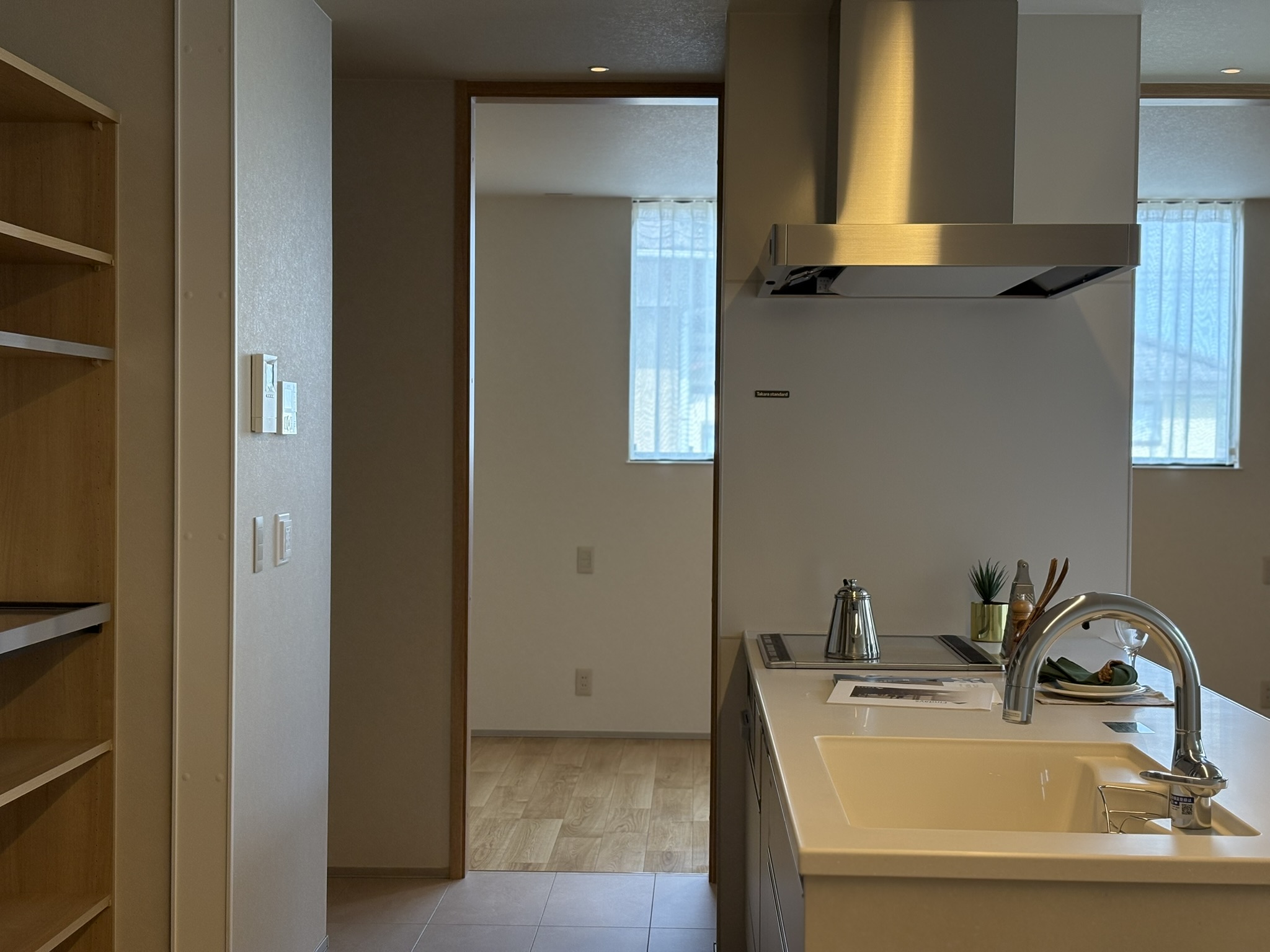 キッチン~ダイニング~リビングがゆるやかにつながり、家族が自然に集まる空間になっています。