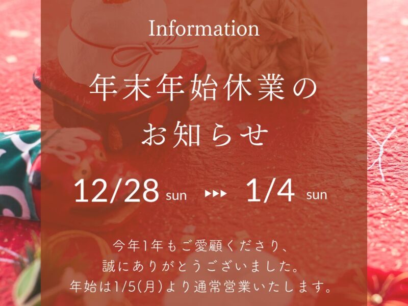 年末年始休業のお知らせ
